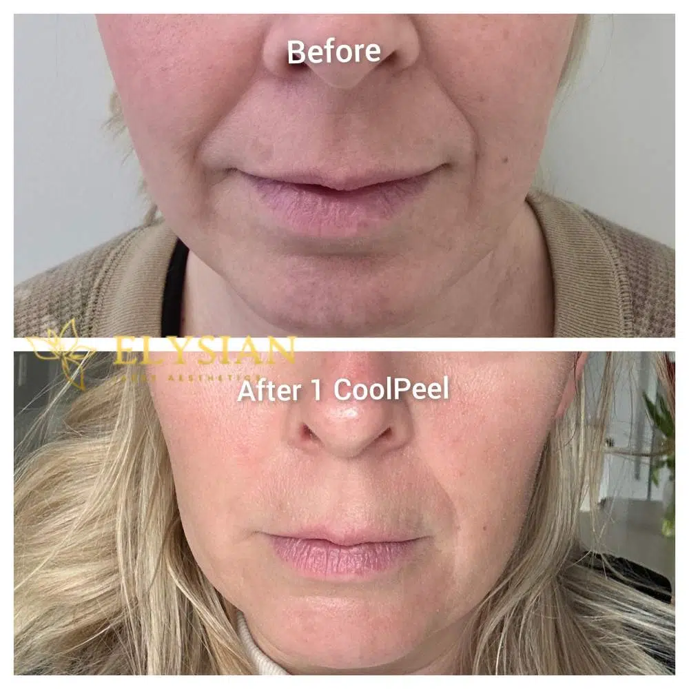You will begin to notice the amazing effects of the CoolPeel™ within ten days of treatment. One of the benefits of this treatment is that results continue to improve over the next 3-6 months as the deeper layer of the skin continues to heal and improve.